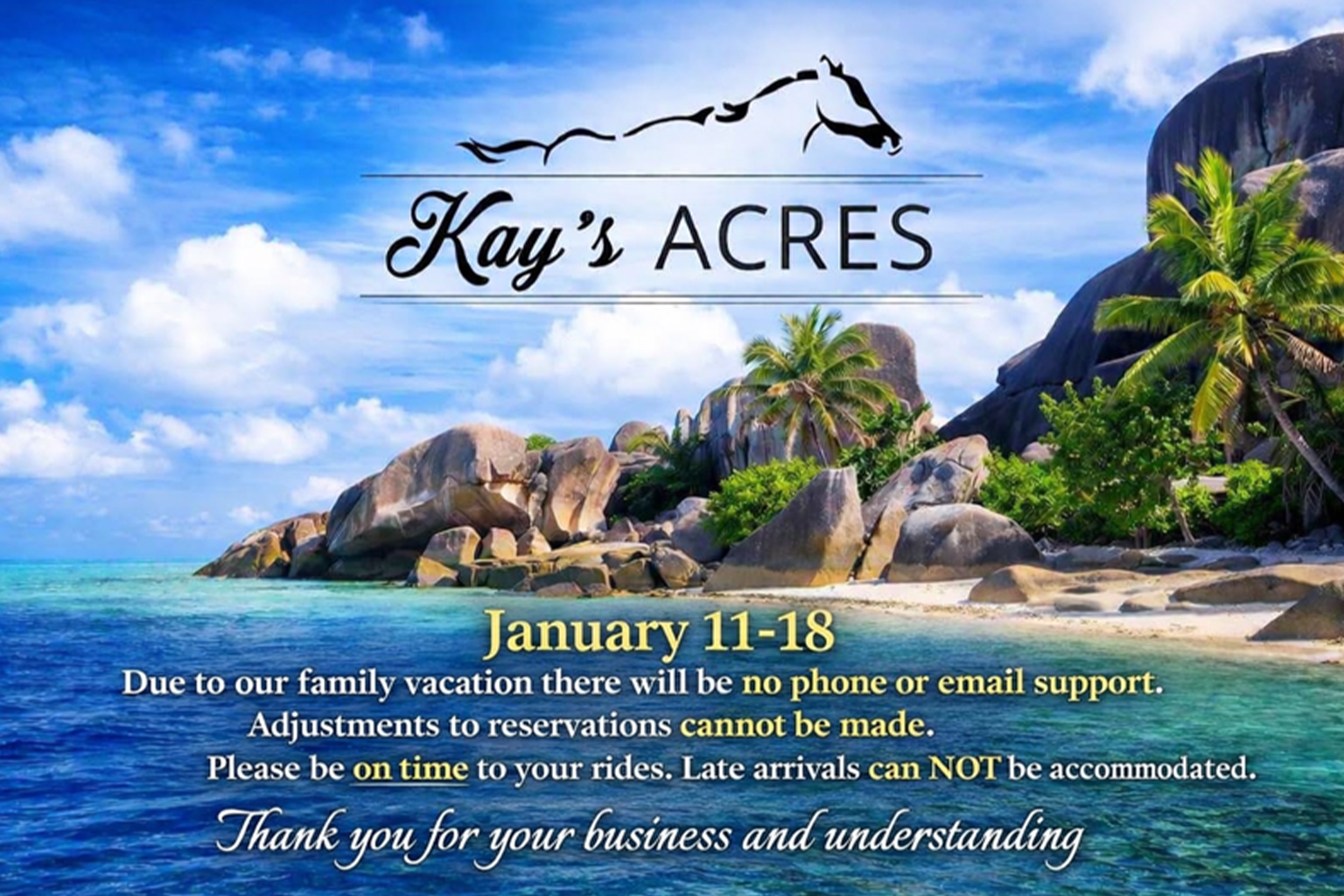 “Had a wonderful time volunteering at Kay’s Acres. Can’t wait for Kay’s Winter Wonderland! Meeting new and old friends. A therapeutic riding center close to home. Great place to help others if you want to volunteer your time.”
